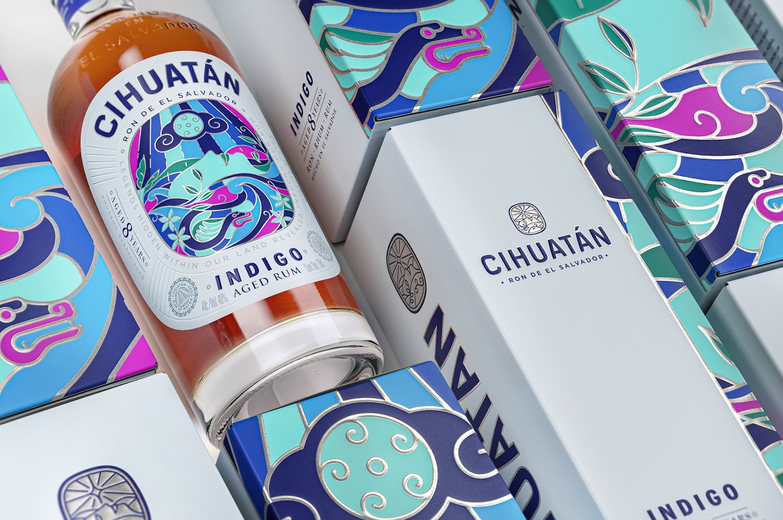 Cihuatan是一個來自薩爾瓦多的特制朗姆酒品牌。在納瓦特方言中,“Cihuatán”的意思是“女神熟睡的土地”。通過插圖刻畫鮮花綻放過程中的力量和美麗,通過女神睡顏表達(dá)女神的繁衍生息的力量。在工藝上“女神”的輪廓運用燙銀和凸紋的技術(shù),讓畫面有了些許立體感,增強畫面層次。色彩上,采用當(dāng)?shù)靥赜械呐屠渖钆浞绞剑屛幕姆柛由钊肴诵摹?/span>