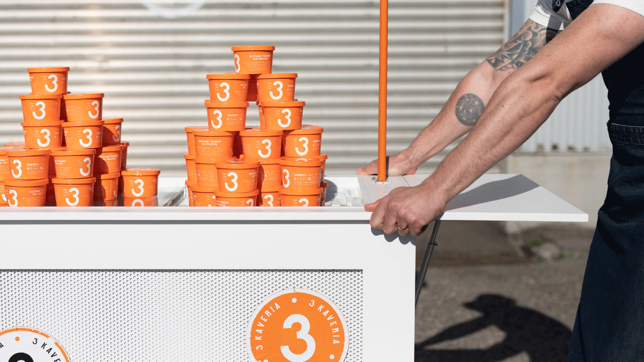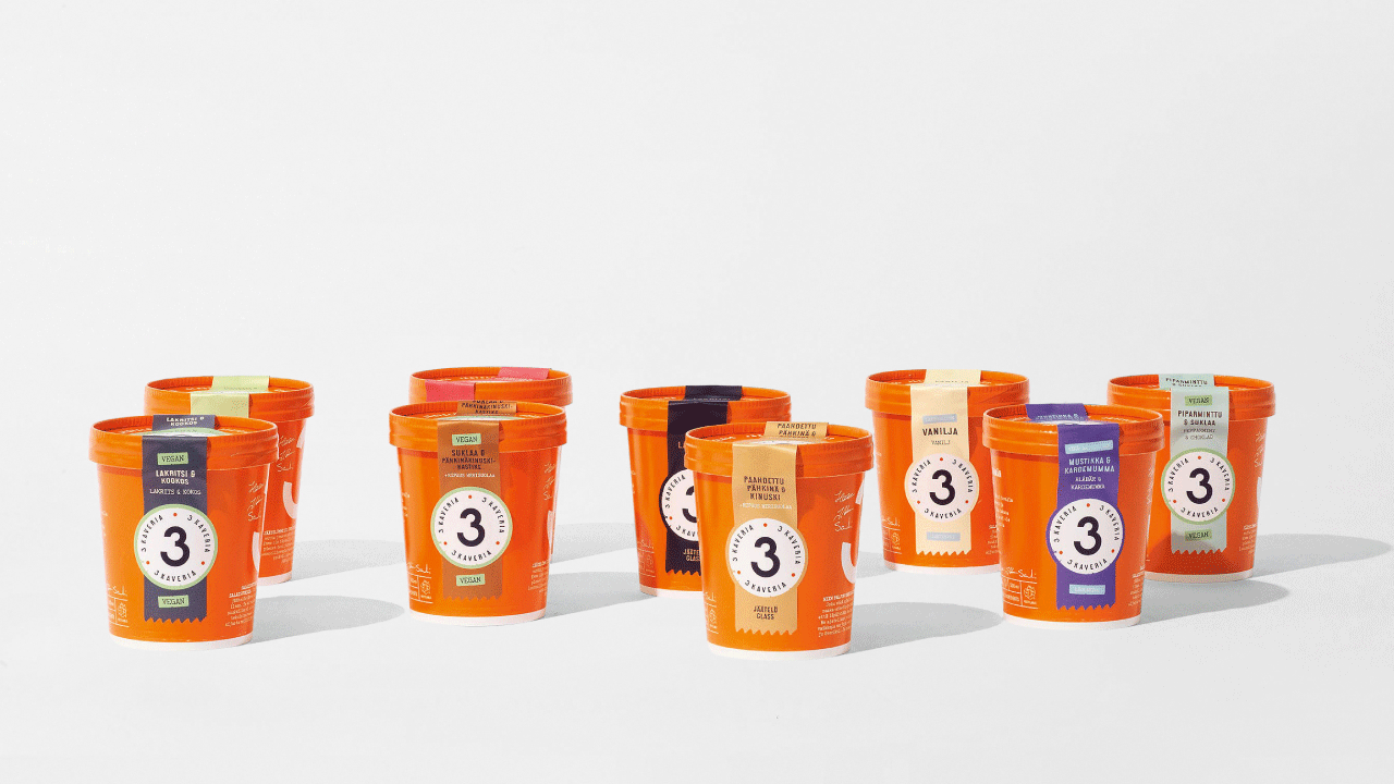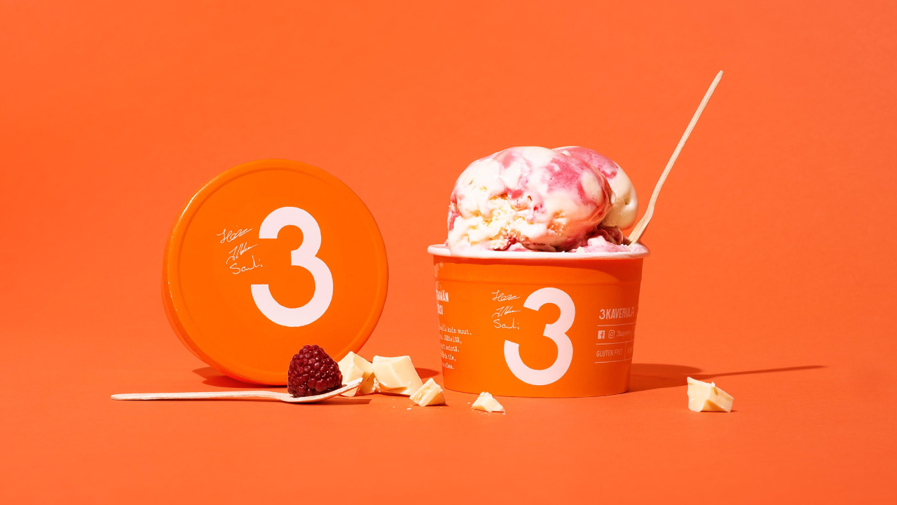 這是芬蘭第一個手工冰淇淋品牌,由3位熱情的冰淇淋愛好者所創立。他就像真正的朋友一樣,3 Kaveria冰淇淋也不是秘密。它僅由優質天然原料制成,因此沒有理由解釋或隱藏任何東西,包它自己,為了在冰箱中更好地脫穎而出,它使用明亮的橙黃色可以使它在眾多偏冷色系的同類產品中格外的醒目。