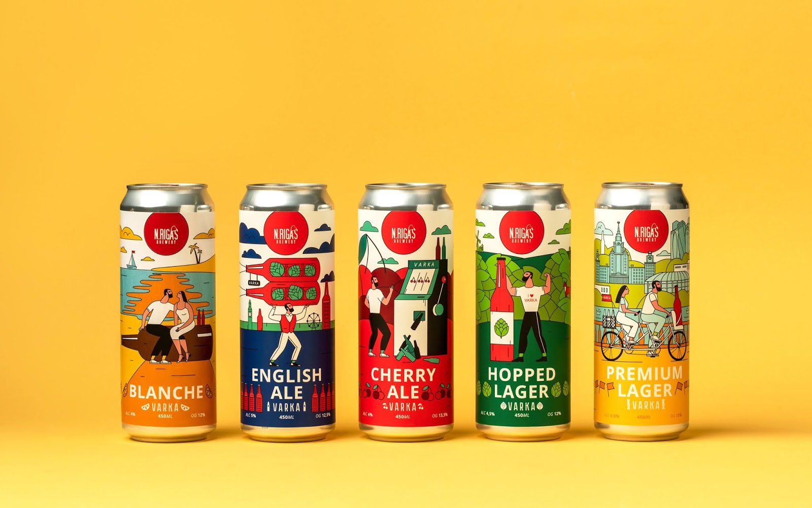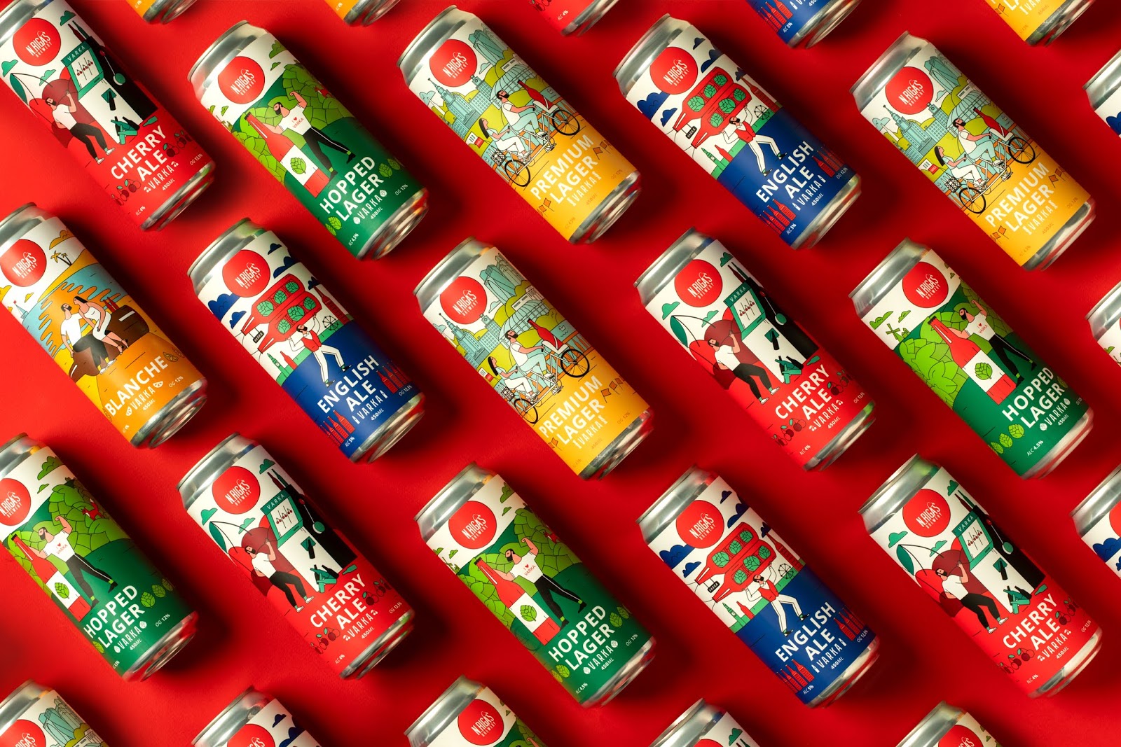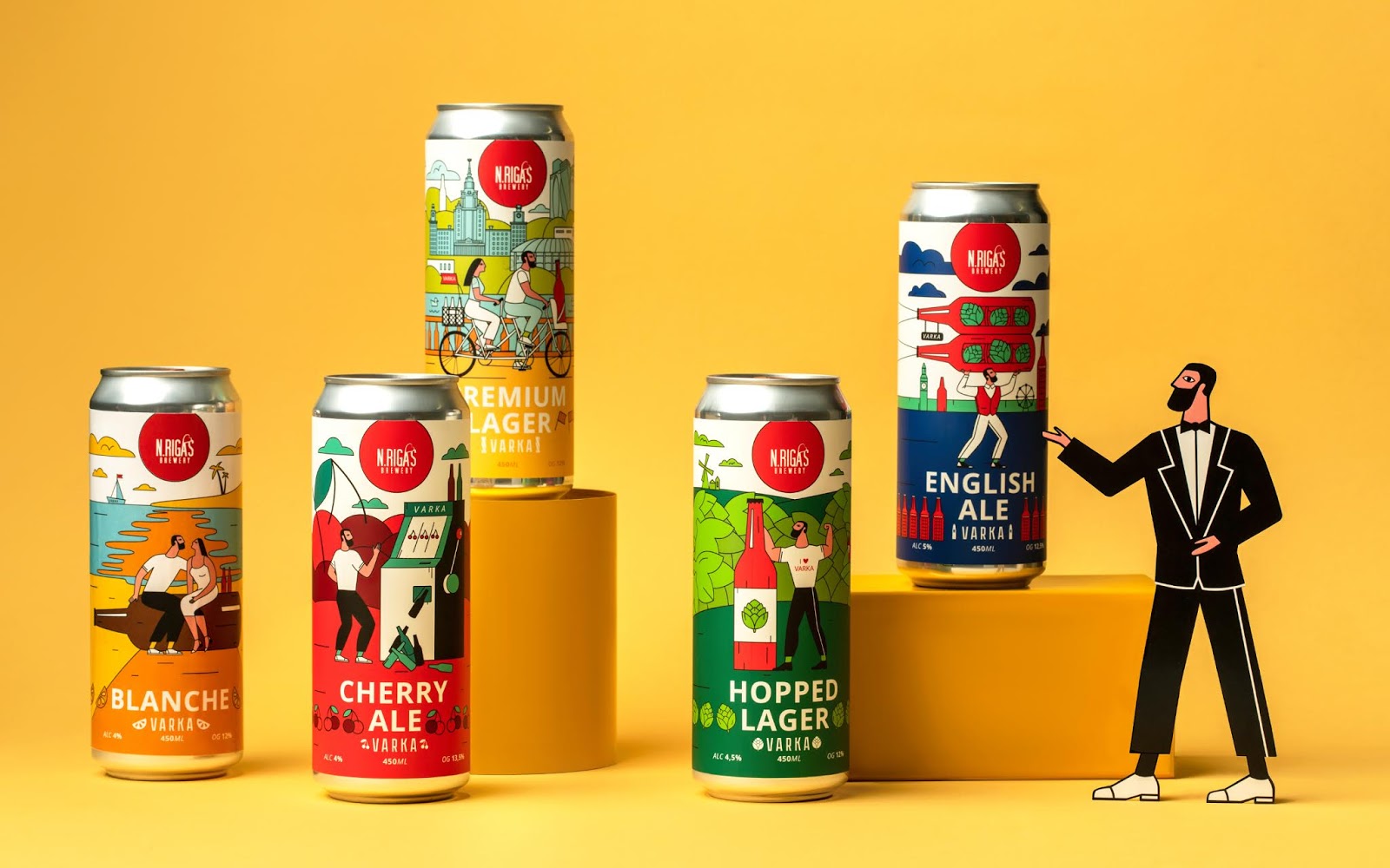 這是VARKA啤酒包裝設(shè)計,使用當(dāng)下比較流行的插畫形式,描繪了商品在生活中的使用場景,用多種艷麗的顏色烘托出正向、多姿多彩的氛圍。